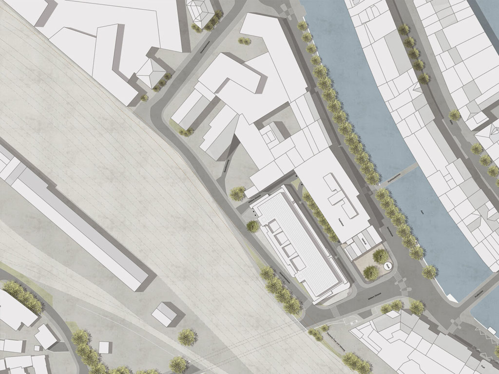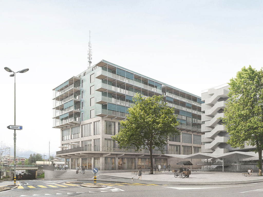 Das von BHSF Architekten in Zürich entwickelte Transformationsprojekt beabsichtigt eine neue Dienstleistungsnutzungen sowie die Schaffung von preiswertem und zeitgemässem Wohnraum. Die oberen drei Etagen des Bestandsgebäudes werden zurückgebaut und durch vier neue Etagen in Holzbauweise mit insgesamt 90 Wohnungen ersetzt. Der untere Gebäudeteil bleibt bestehen und wird für gewerbliche Nutzung umgestaltet.