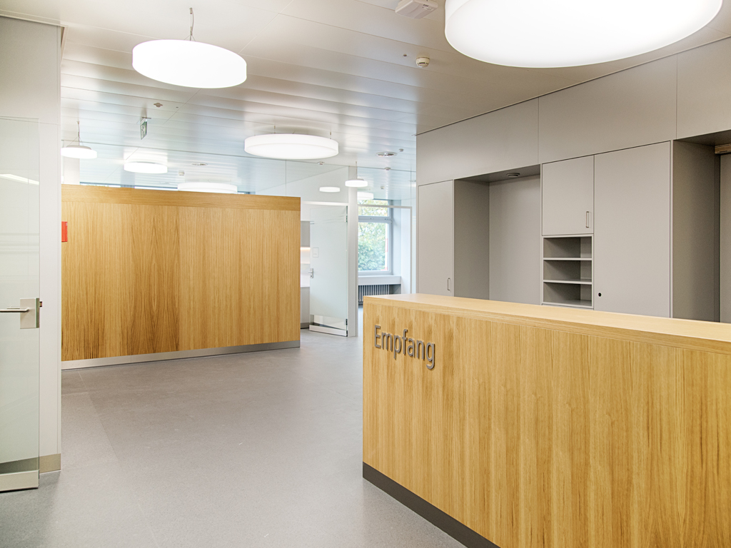 Sanierung und Umbau von Praxis und Untersuchungsräumen mit Empfang und Wartebereich (ca. 400 m2) im laufenden Spitalbetrieb, kompletter Rückbau bis auf Rohbaustruktur, Ausführung in 12 Wochen.