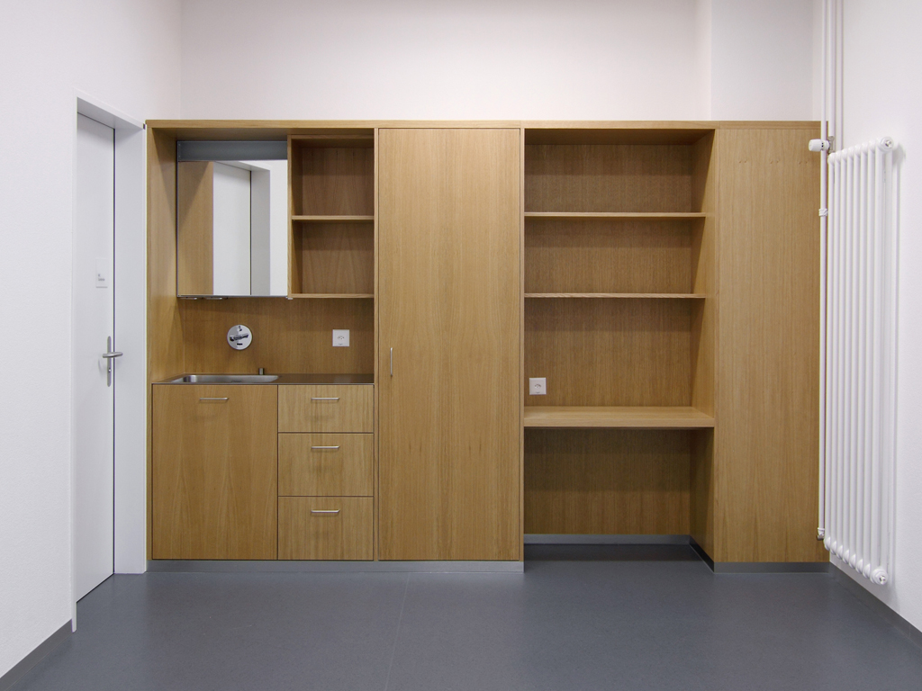 Besonderes: Etappenweise Gesamtsanierung, Einbau von Behandlungsräumen (Physiotherapie, Blutspendezentrum) und der Spitalverwaltung in das ehemalige Möbel- und Lagerhaus Fahrni-Weinmann.