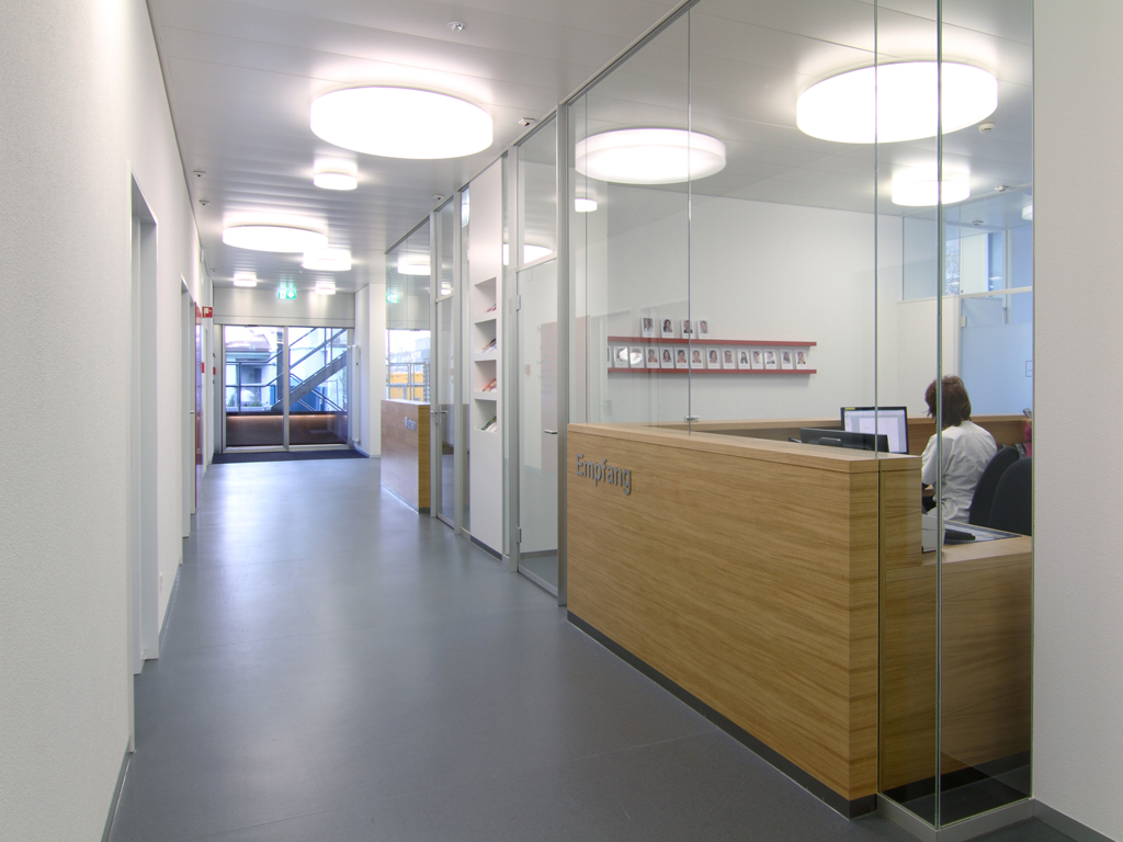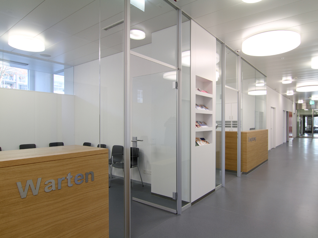 Reorganisation der funktionalen Betriebsabläufe, kompletter Rückbau bis auf Rohbaustruktur, etappierte Ausführung unter laufendem Betrieb der Frauenklinik (2 x 8 Wochen Bauzeit)