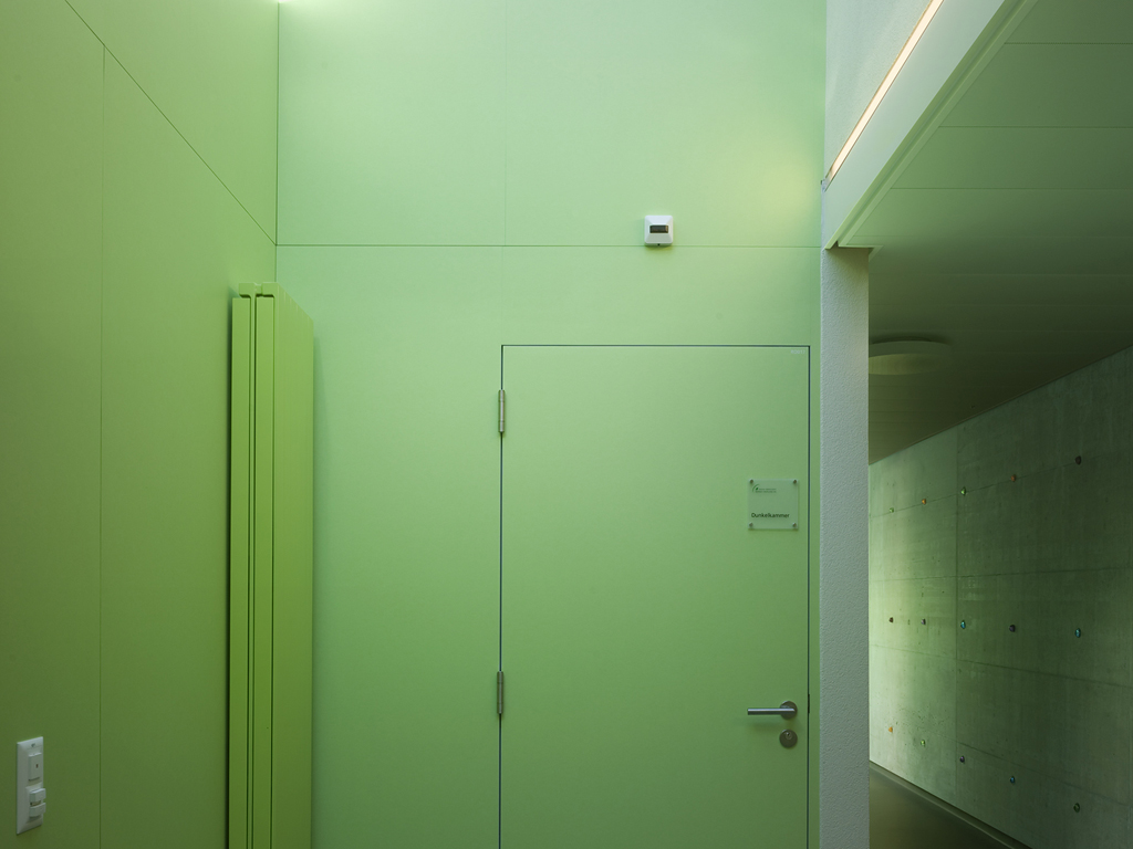 Die gestalterischen Mittel wurden bewusst zurückhaltend eingesetzt. Akzente setzten die Einbauten und Abschlussfronten in Eichenholz.