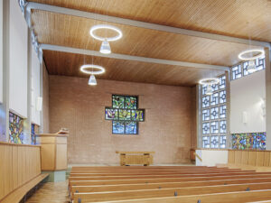 Authentische Sanierung der denkmalgeschützten Kirche des Architekten Otto Hans von 1958.